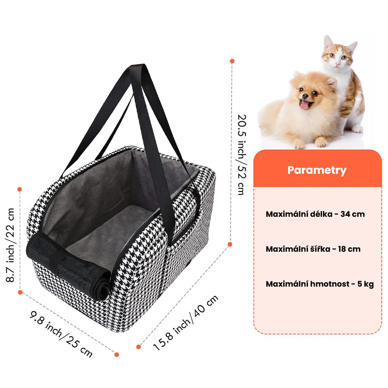 Maximální nosnost této sedačky je 5 kg, což zahrnuje různá plemena jako: